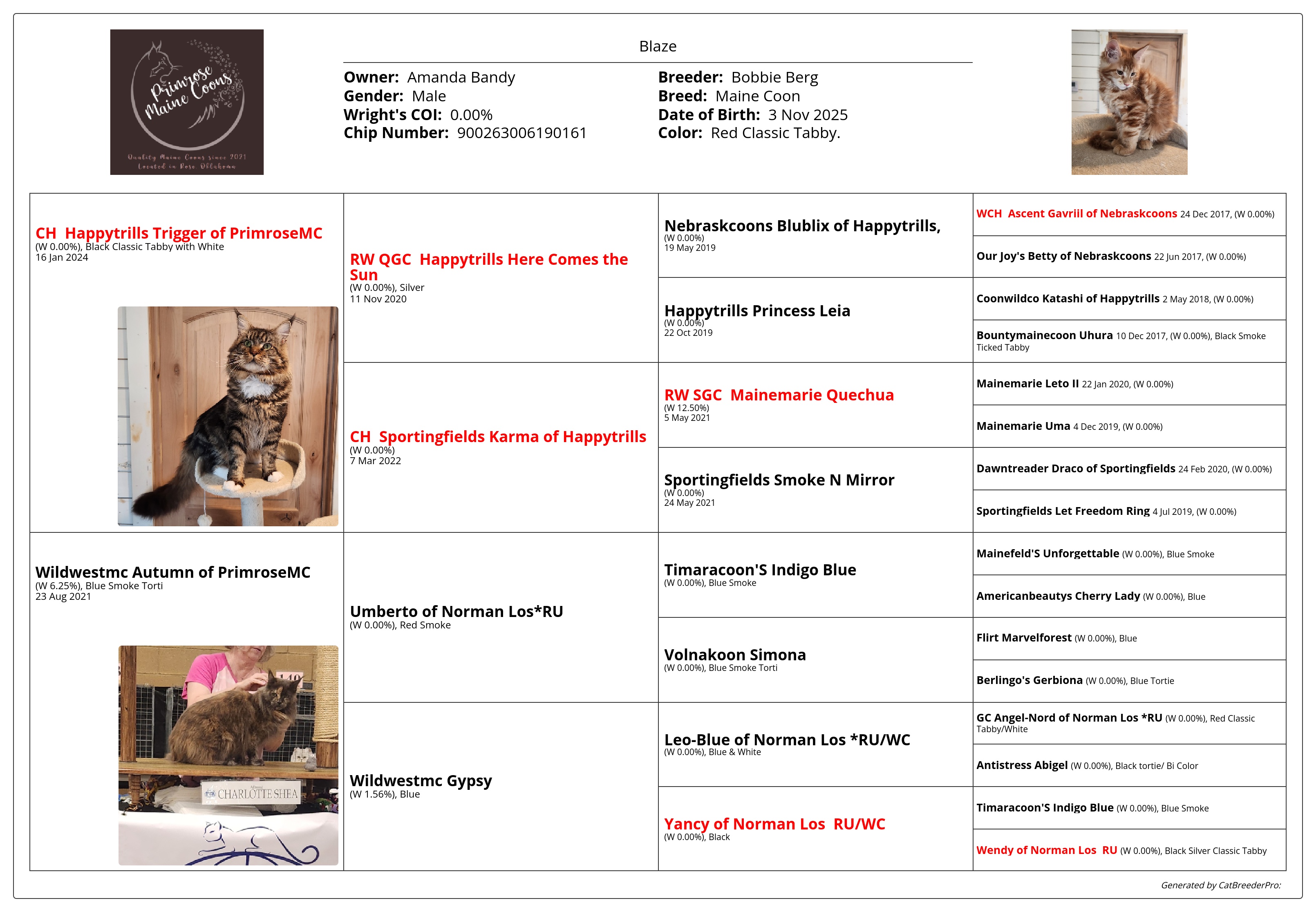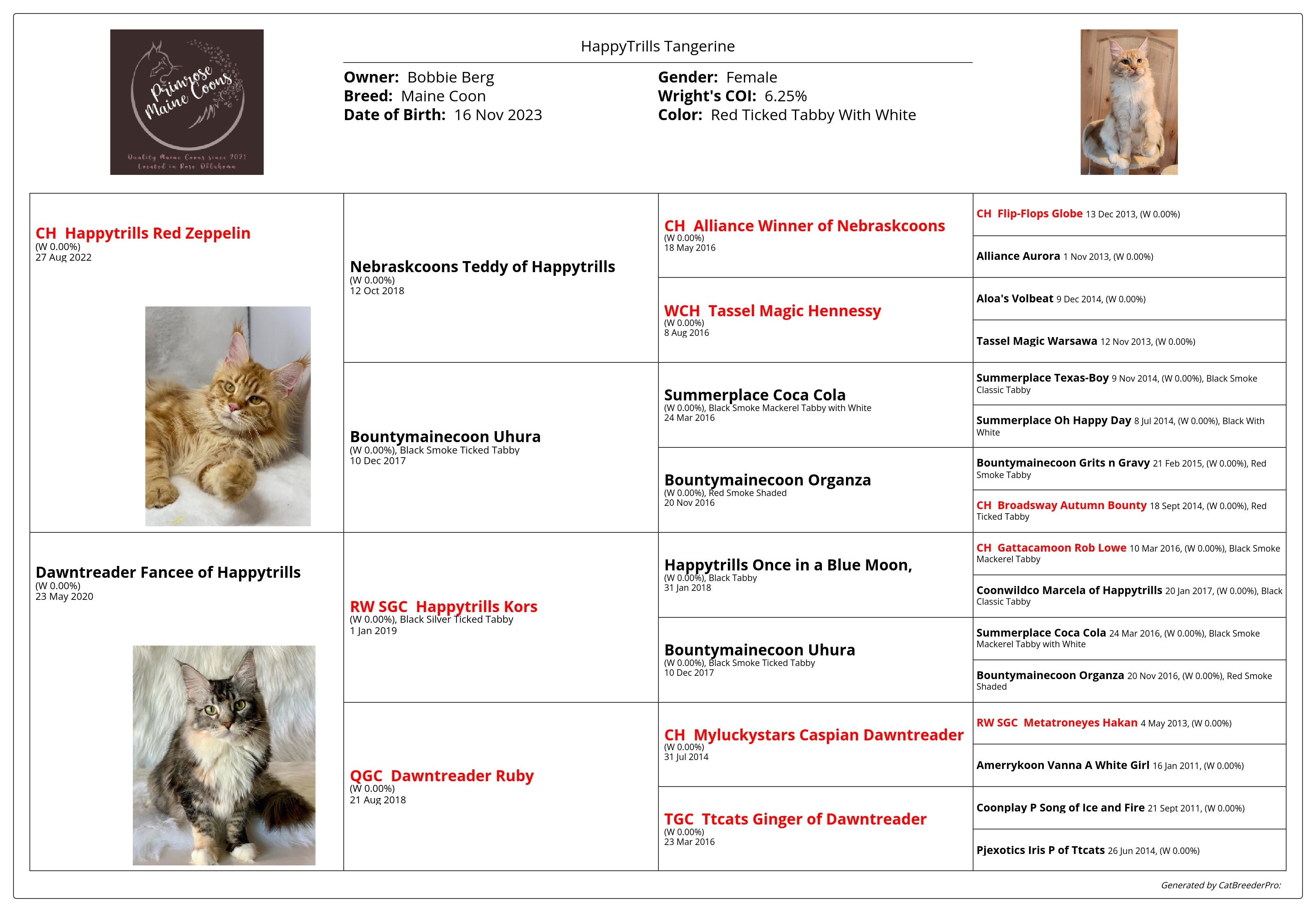 To see the most updated information about Primrose's litters and the most updated kitten pictures, please visit the Primrose Maine Coons Facebook page.