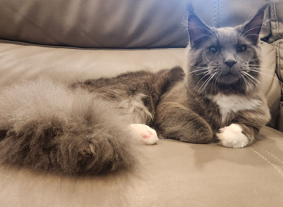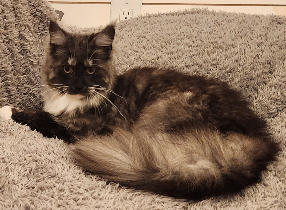 We got our start on Maine Coons after a friend contacted me and inspired me to enter the purebred cat world and we chose this beautiful, regal breed. We focus on early socialization as kittens to give them a great start as a loving family member. We travel to cat shows to have them examined as great representations of the breed, both physically and mentally. We make sure to do CatScan or Wisdom panels and do Pawped and/or OFA hip and patella health testing on our cats to ensure great genetics. We also do echocardiograms on all of our cats before breeding and do yearly checks. Our cats live in-home, getting experience with large and small dogs, chickens, and plenty of people!